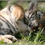 Nach fünf Tagen ist leider einer der Welpen eingegangen. Den Zweite, einen tollpatschiger Tigerjungen können die Besucher des Zoos seit einigen Tagen beim Spielen und Füttern beobachten. Im Alter von gut zwei Monate gibt es zum Ziegenmilch-Flascherl auch die erste feste Nahrung. Auch übt er schon fleißig anschleichen und fangen, sein Pfleger David hat dabei schon so manche Schramme davon getragen. Bald ist der Kleine durch das Herumtollen erschöpft und rollt sich auf ein ausgiebiges Nickerchen zusammen. In einigen Monaten wird der Jungtiger nach Serbien in den Zoo von Palic übersiedeln.
